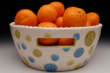 Is it spring fever? I can't stop looking at Kari Radasch's luscious new glaze-fired terra cotta work, with its bright - but not too bold - colors, clean designs, and cheerful iron-transfer decals. I smiled to read in her artist's statement that, along with many other sources of inspiration (design objects, textiles, mosaics, to name a few), she says her pots and surface are "rooted in the garden" - it makes beautiful, organic sense.
