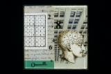 Janis’ work is the result of a laborious and challenging process. Similar to scrafftio, where a design is scratched through a colored ground revealing another color beneath; to produce the image Janis sifts black glass powder onto sheet glass, scraping away the powder to produce the detail. The image is suspended between layers of sheet glass and fired in a kiln to fuse the constituent pieces together. In this manner any number of images can be combined to produce complex juxtapositions. The result is a collage produced entirely in glass, built from a time-consuming process allowing for an extended contemplation ...
