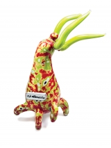 Stephanie DeArmond’s sculptural letterforms are not easily defined by art-school limitations of sculpture, vessel and design. Her work humorously appropriates text from American subculture and abstracts it into aesthetic form, as in Cross-stitch T. DeArmond’s sculpture evokes the preciousness and innocence of your grandmother’s china cabinet, yet a closer reading reveals unexpected phrases, like that in Best/Beast. The artist often cites lyrics taken directly from American pop-cultural forces like hip-hop and indie rock. “I use rap lyrics because I am interested in connecting that kind of culture to fine china,” she says. “I love the idea of rappers with gold ...