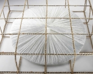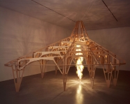 Upon entering Jorge Pardo’s “House,” the viewer is greeted by an intriguing amalgam of art, design and architecture that crosses genres, defies definition and reveals the artist’s personal response to everyday objects. Adopting the premise of a home, this major mid-career exhibition presents over 60 works including sculpture, installations (such as Untitled, 2003) and paintings, organized in vignettes that represent separate areas of a house. A refrigerator and table identify one gallery as the kitchen; beds, a chest of drawers and sexy high-heeled slippers denote a bedroom and an architectural pattern establishes another area as the garden.